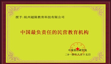 杭州超限教育中心分別獲得了浙江大學、廈門大學、西南大學、西北大學、澳大利亞墨爾本大學“最佳年度合作伙伴”稱號,獲得了由中國管理研究院頒發(fā)的“中國優(yōu)秀管理企業(yè)”稱號,由中國責任研究院頒發(fā)的“中國最負責任的企業(yè)”稱號。