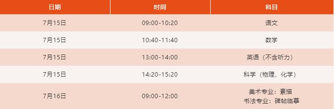 文化考試科目:語(yǔ)文、數(shù)學(xué)、英語(yǔ)、科學(xué),總分共400分,考試范圍與中考一致。