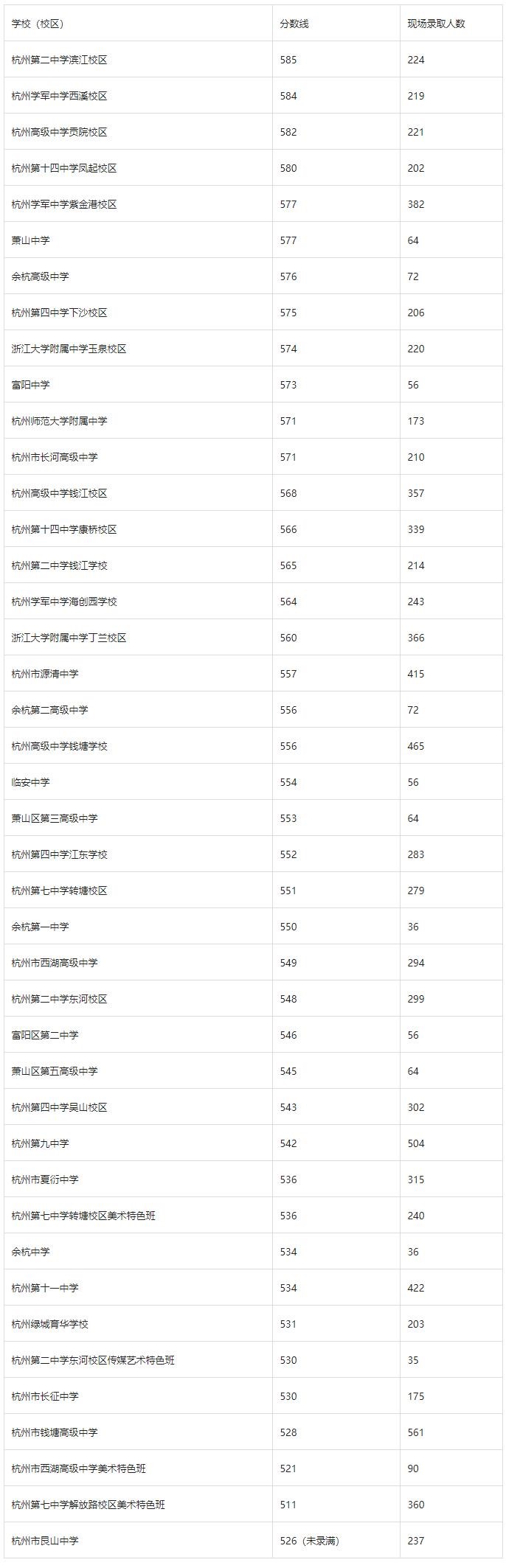 2022年杭州市區(qū)各類高中招生集中統(tǒng)一第一批錄取學(xué)校錄取分?jǐn)?shù)線