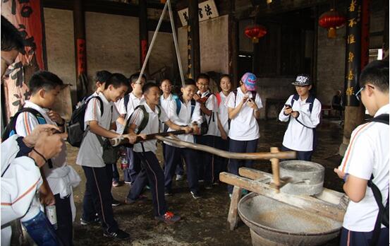 龍門古鎮(zhèn)地處富春江畔龍門山下,四面皆山,東漢嚴子陵暢游時贊嘆“此處山清水秀,勝似呂梁龍門”,因此而得名。此地保存明清時期的古建筑,氛圍較為清靜。同學們到達古鎮(zhèn)后,走在鵝卵石鋪成的小徑上,經(jīng)過潺潺的小溪,穿過彎彎曲曲的小巷,一邊品嘗此地的特產(chǎn)油面筋,一邊走進古鎮(zhèn)宗祠和名人故居,瀏覽孫氏的宗譜,了解孫氏名人的英雄事跡。