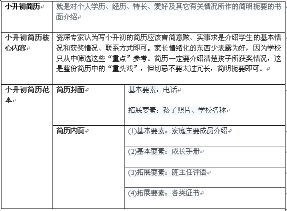 優(yōu)秀小升初簡(jiǎn)歷要點(diǎn)