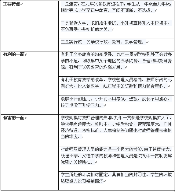 《杭州超限教育中心王小林2015年10月28日訊》九年一貫制與國(guó)家提倡的九年義務(wù)教育有著本質(zhì)的相似性,在實(shí)際更多運(yùn)用指各個(gè)學(xué)校把小學(xué)和初中階段的學(xué)習(xí)一體化,如各個(gè)學(xué)校為小學(xué)6年級(jí)學(xué)生直接提供初中入學(xué),直至上完初三,不擇校流動(dòng)。具體九年一貫制理解如下表: