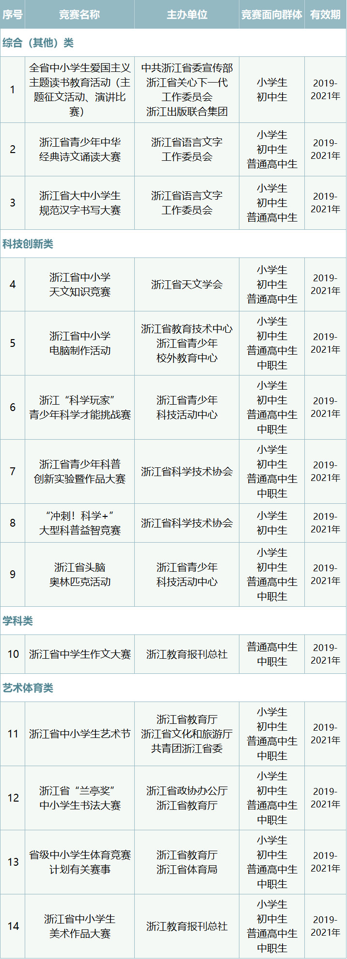 浙江省進(jìn)入中小學(xué)校的全省性競(jìng)賽項(xiàng)目名單