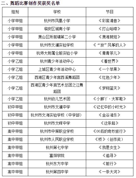 附件:2019年杭州市中小學(xué)生戲劇、舞蹈比賽優(yōu)秀創(chuàng)作獎獲獎名單