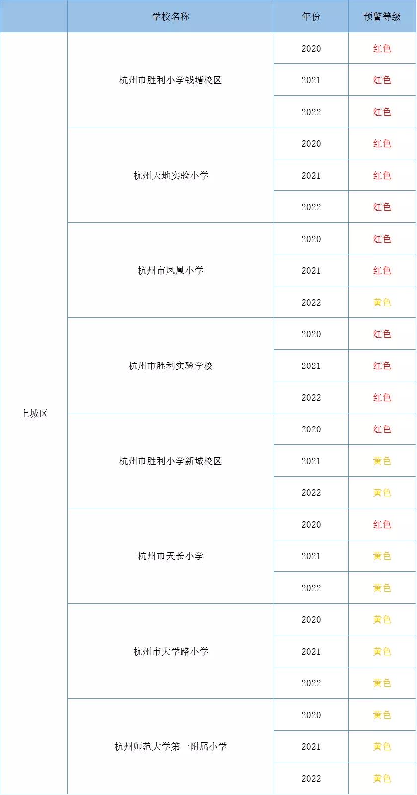 紅色預(yù)警,表示學(xué)區(qū)內(nèi)適齡戶籍兒童人數(shù)達(dá)到或超過學(xué)區(qū)小學(xué)常態(tài)招生計劃數(shù)100%。
